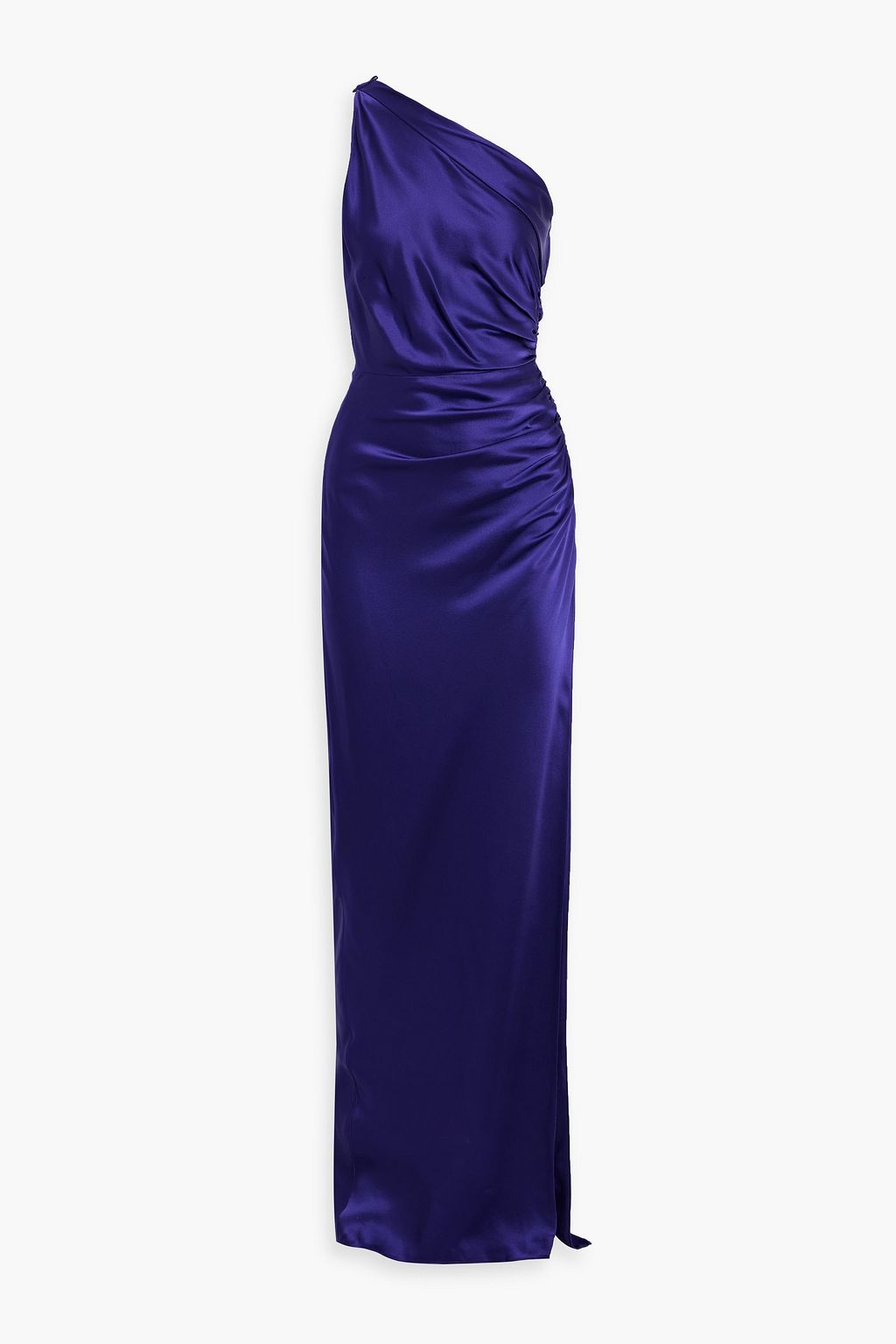 MICHELLE MASON One-shoulder ruched silk-satin gown