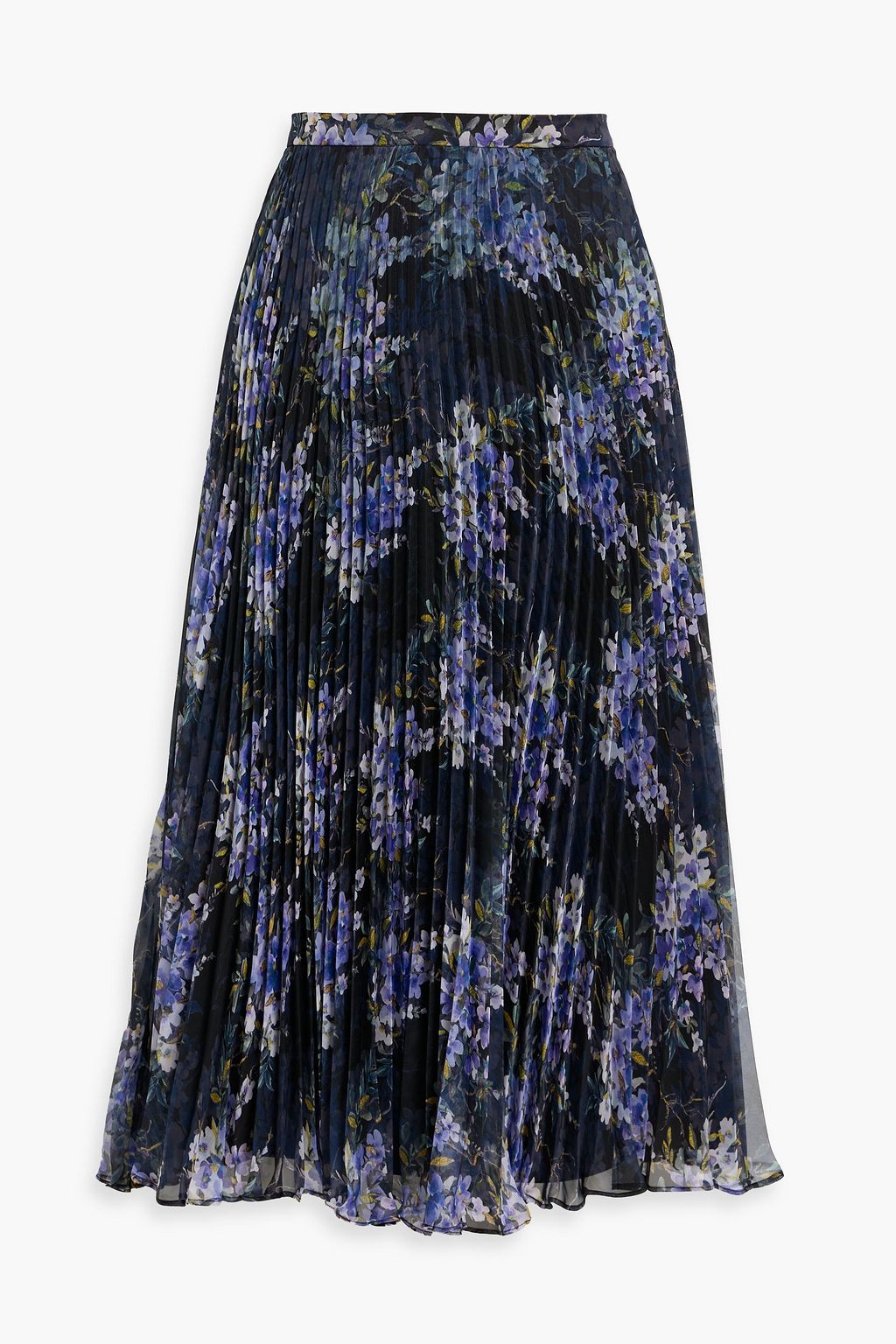 MIKAEL AGHAL Pleated floral-print chiffon midi skirt