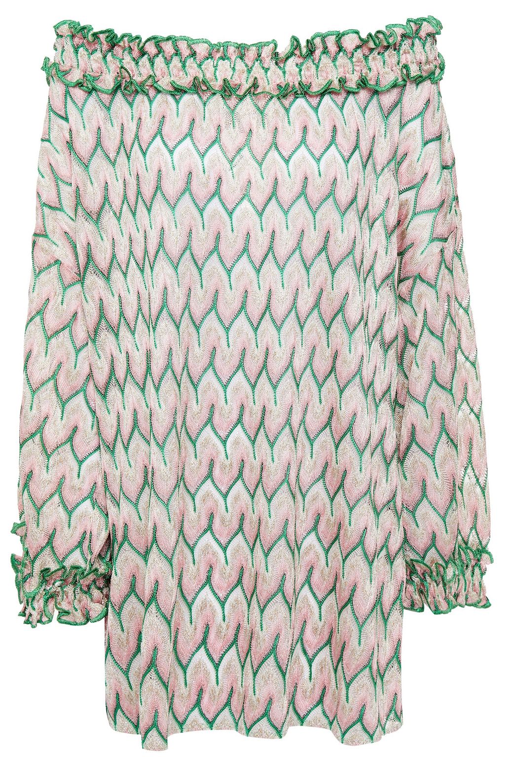 Off-the-shoulder metallic crochet-knit top