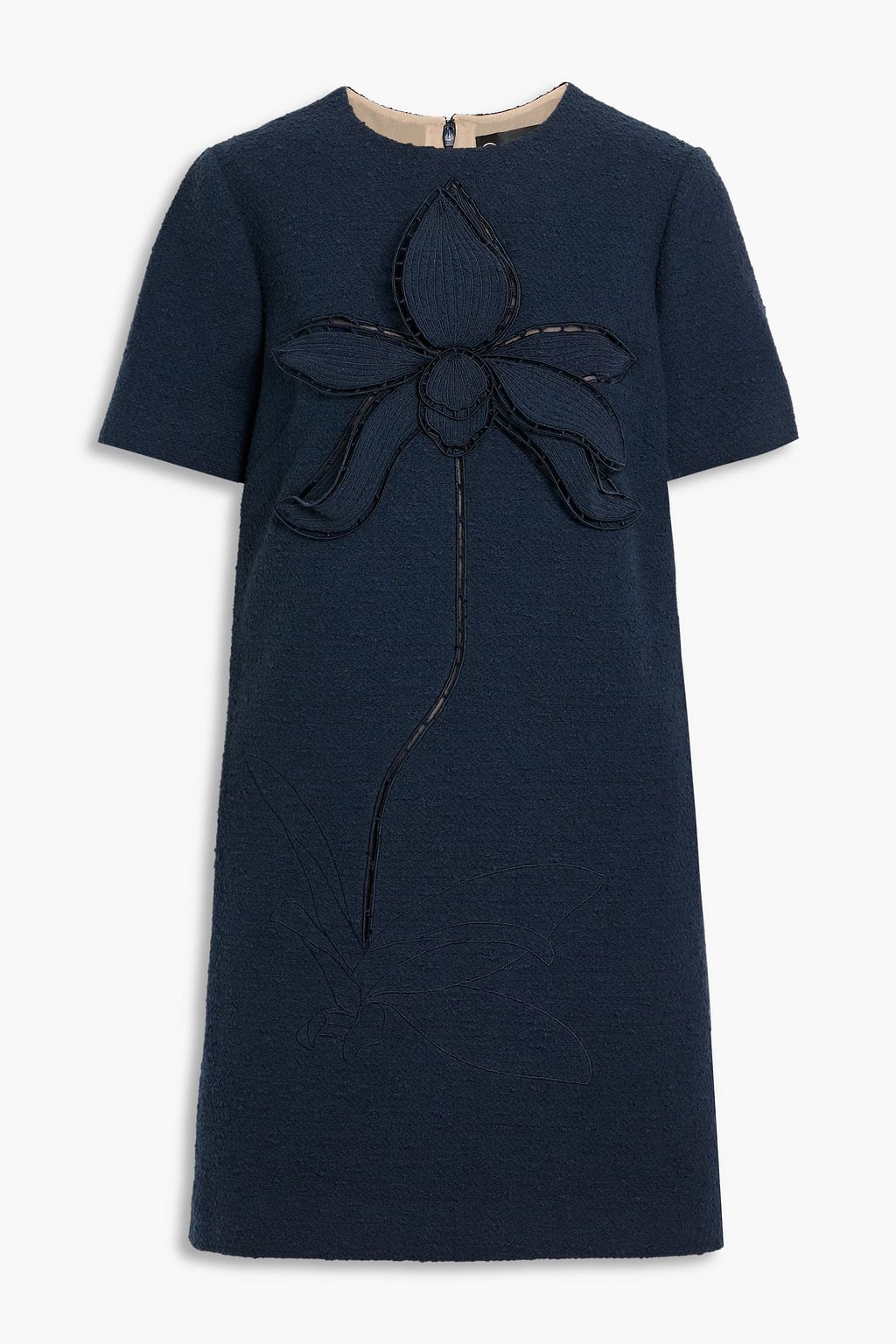 OSCAR DE LA RENTA Floral-appliquéd cotton-blend tweed mini dress