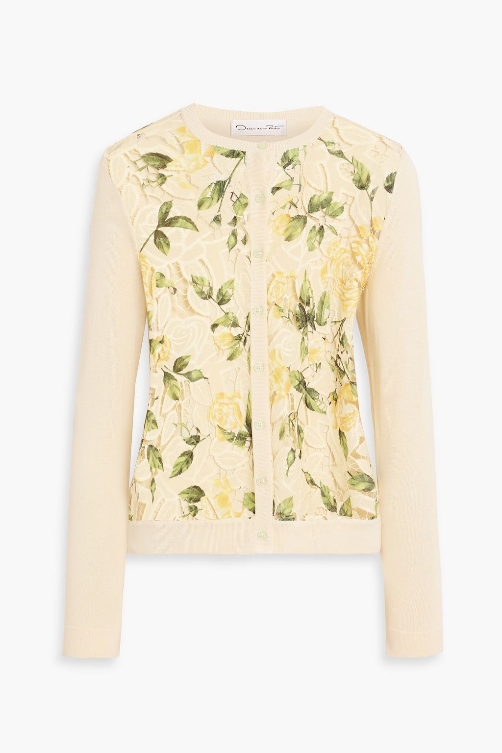 OSCAR DE LA RENTA Floral-print guipure lace and silk-blend cardigan