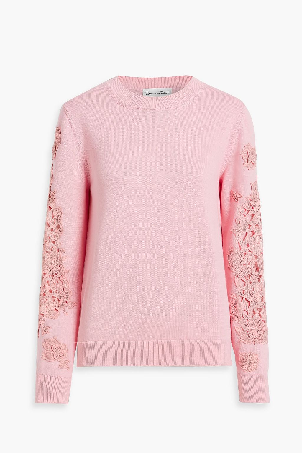 OSCAR DE LA RENTA Guipure lace-trimmed cotton sweater