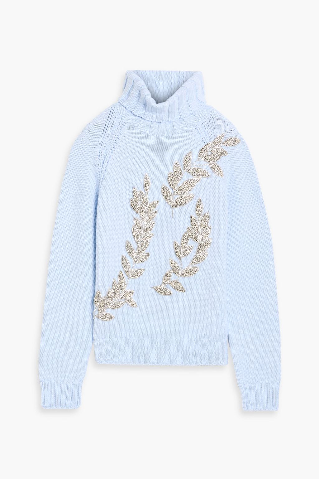OSCAR DE LA RENTA Crystal-embellished wool turtleneck sweater