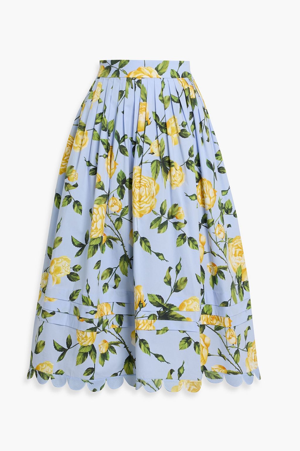 OSCAR DE LA RENTA Pleated floral-print cotton-blend poplin midi skirt