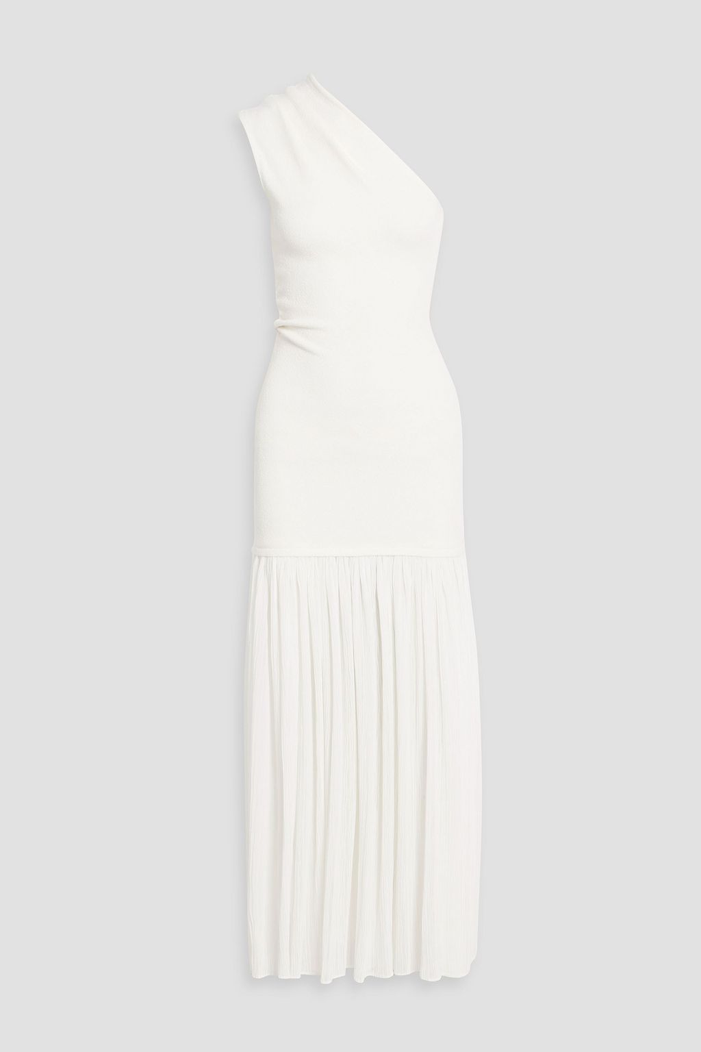 PROENZA SCHOULER One-shoulder bouclé-knit and plissé-chiffon maxi dress