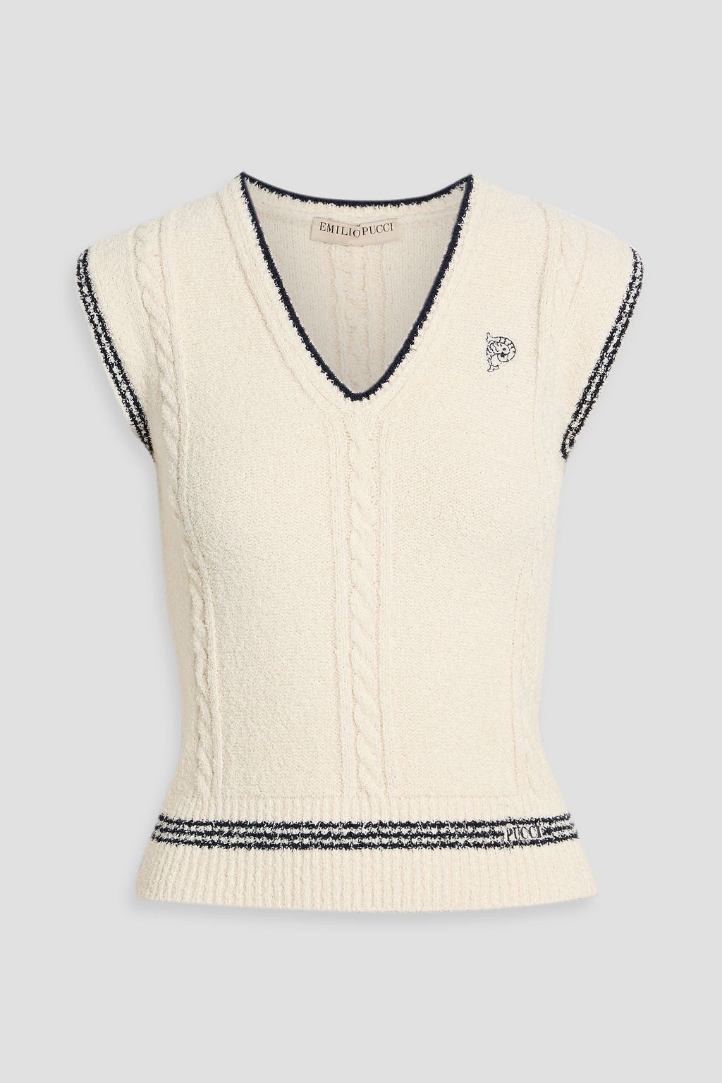 PUCCI Striped embroidered cable-knit cotton-blend vest