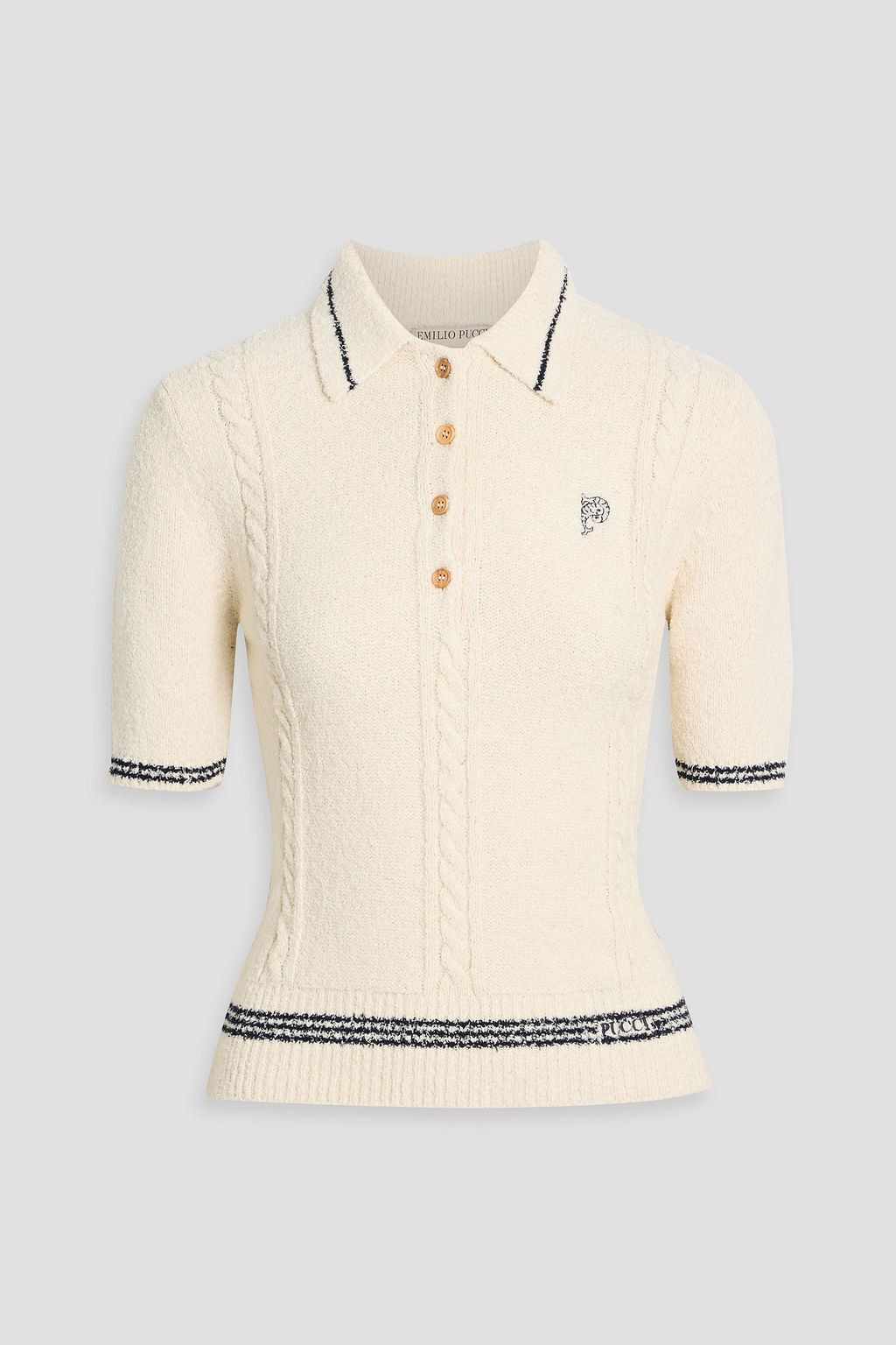 PUCCI Striped embroidered cable-knit cotton-blend polo shirt