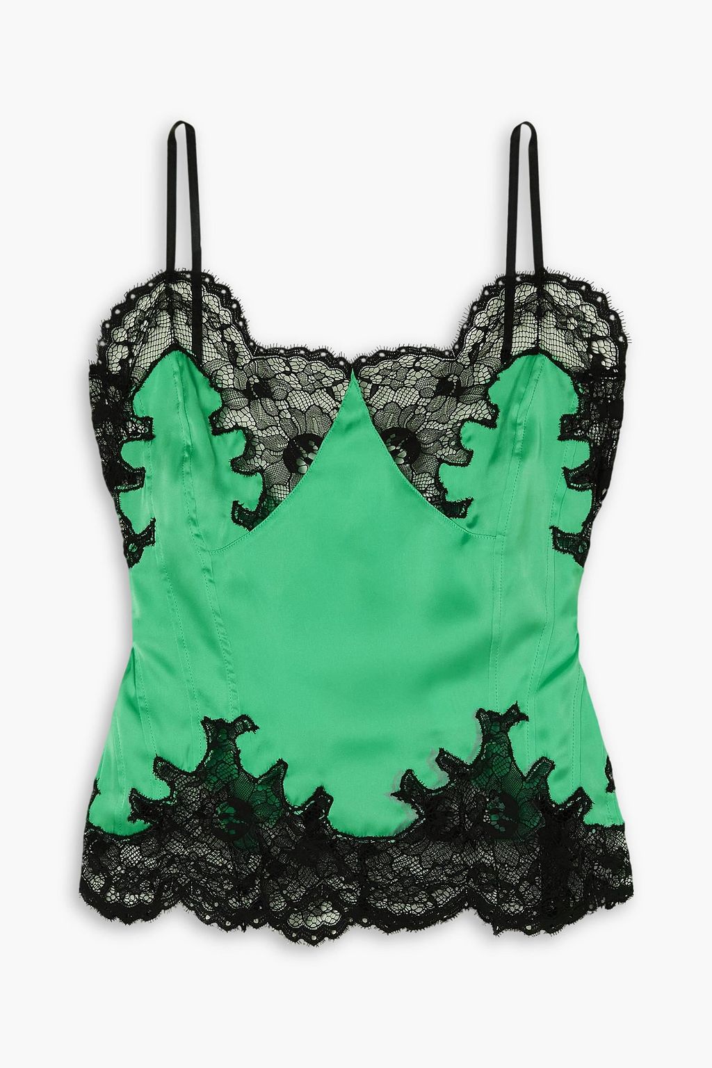 Paco Rabanne's camisole has corset-inspired seams to accentuate your curves. Made from lustrous mint satin, it's trimmed with delicate scalloped lace and has slim straps.