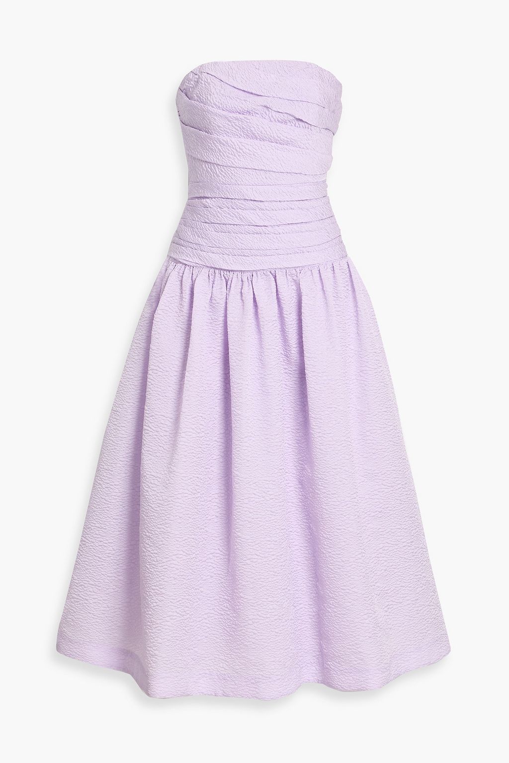 RACHEL GILBERT Sophia strapless draped cloqué midi dress