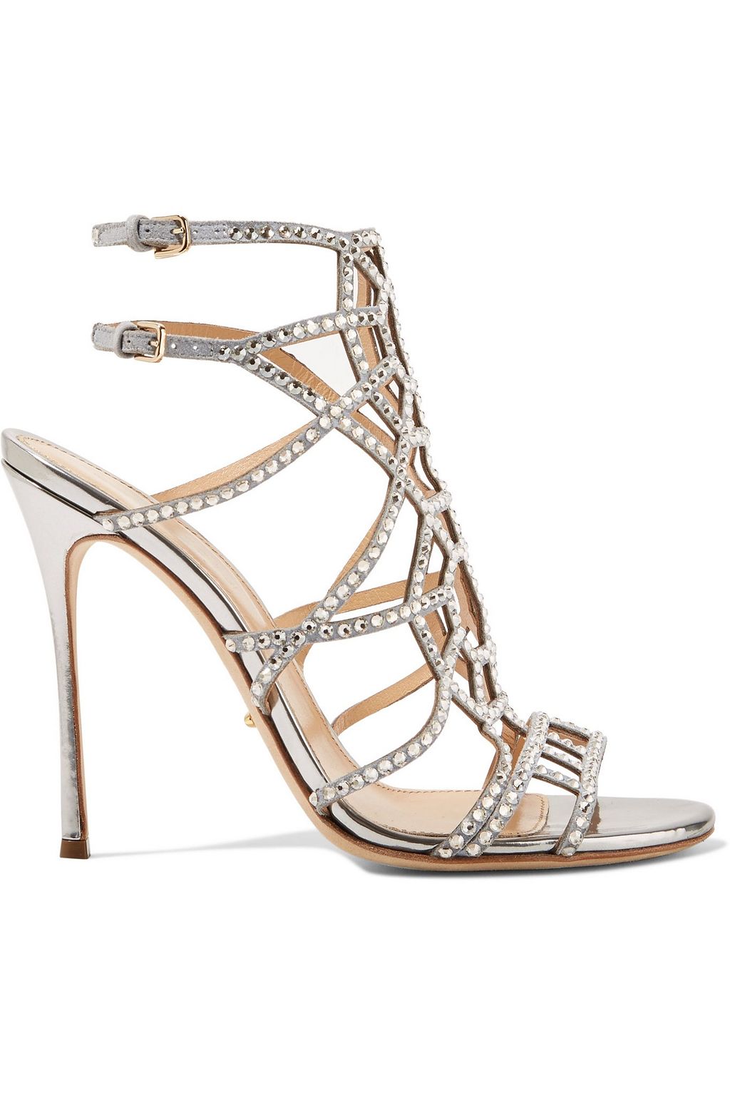 SERGIO ROSSI Royal crystal-embellished metallic laser-cut suede sandals