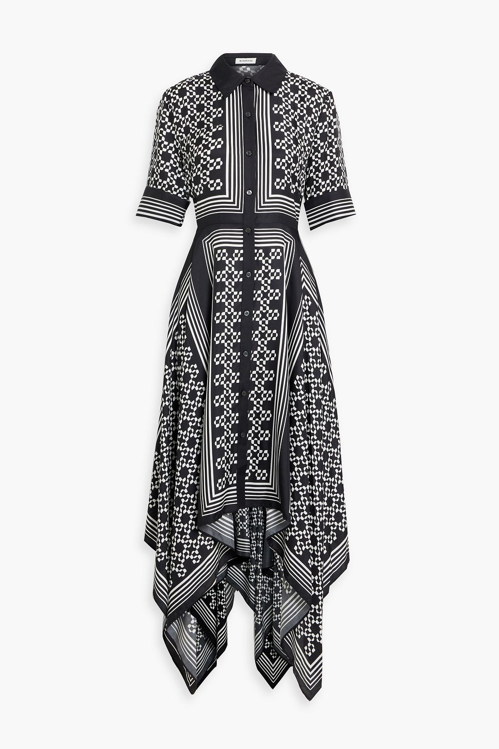 SIMKHAI Abrielle printed TENCEL™ and silk-blend midi shirt dress