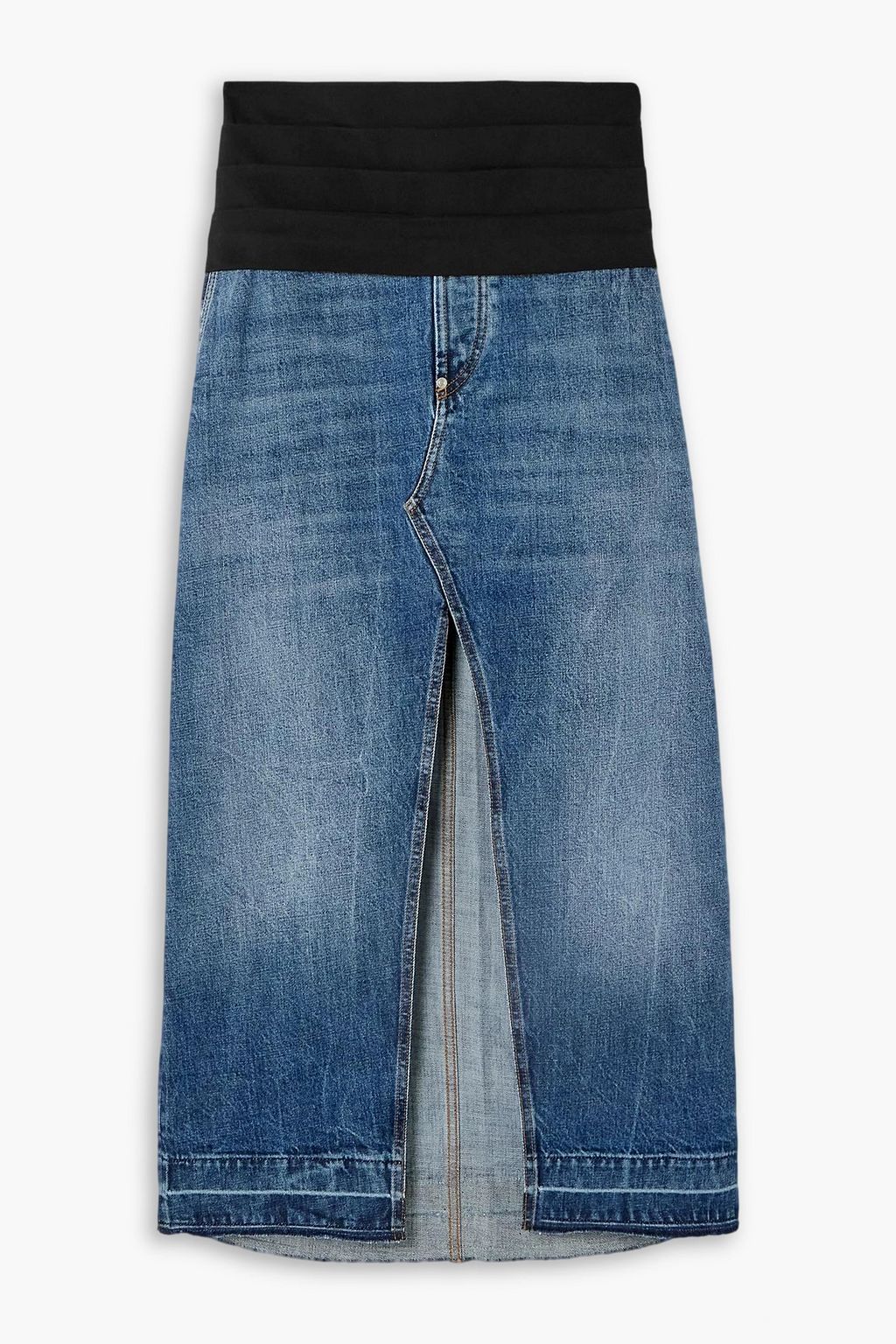 STELLA MCCARTNEY Pleated faille-paneled denim maxi skirt