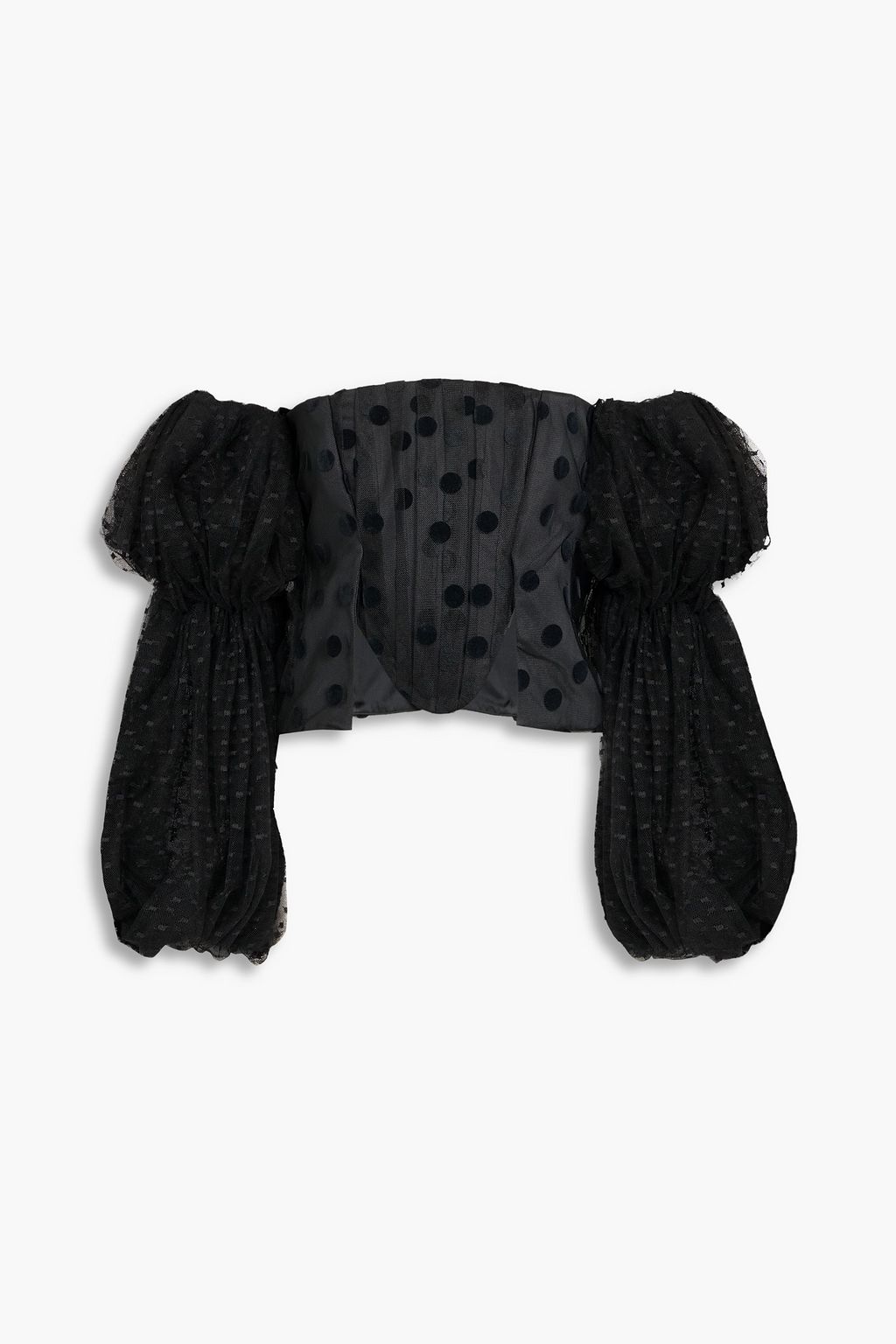 STELLA MCCARTNEY Off-the-shoulder cropped flocked tulle top