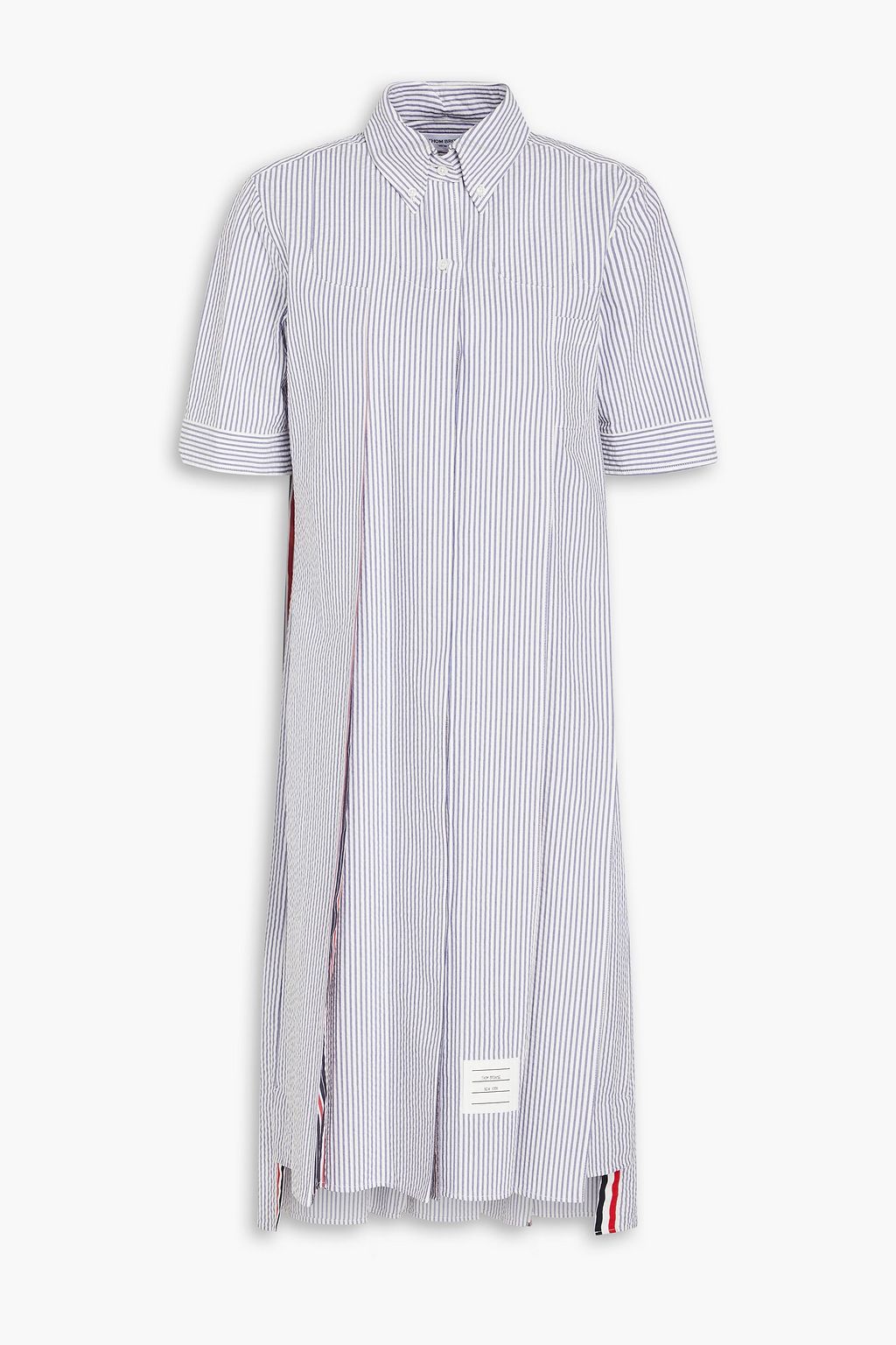 THOM BROWNE Striped cotton-seersucker midi shirt dress