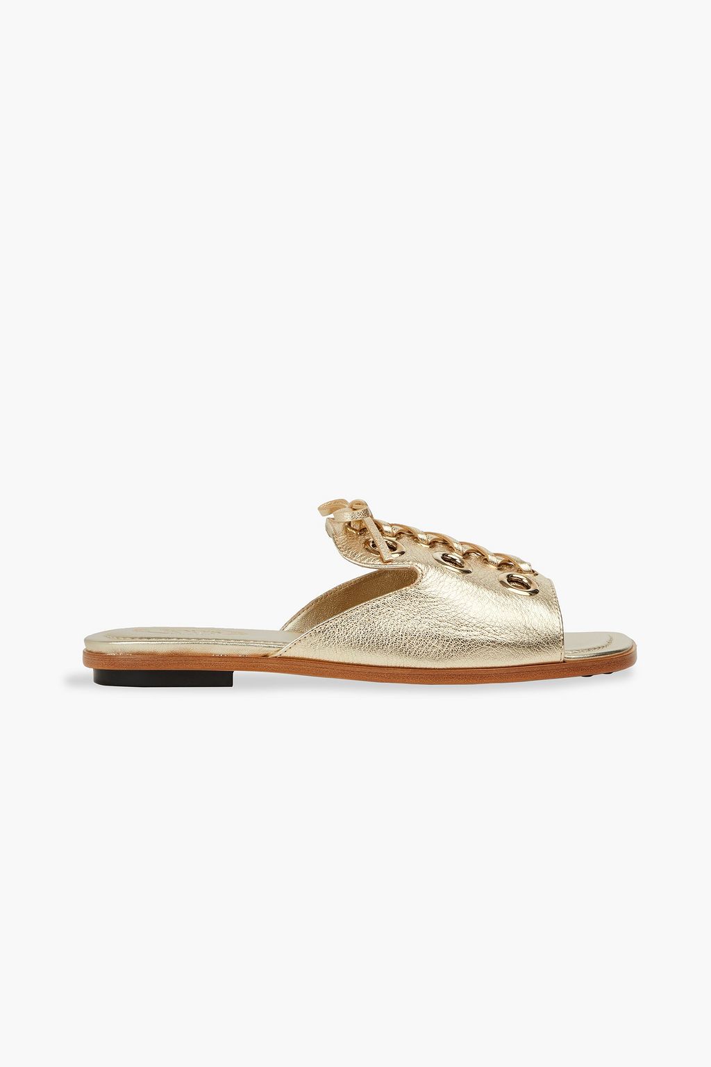 TOD'S Lace-up embellished metallic textured-leather sandals