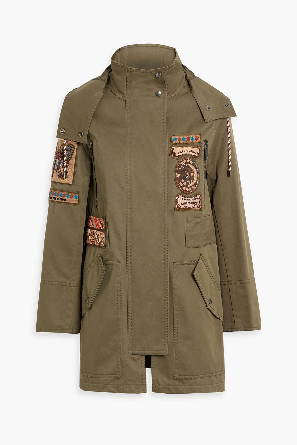 VALENTINO GARAVANI Appliquéd cotton-twill hooded jacket