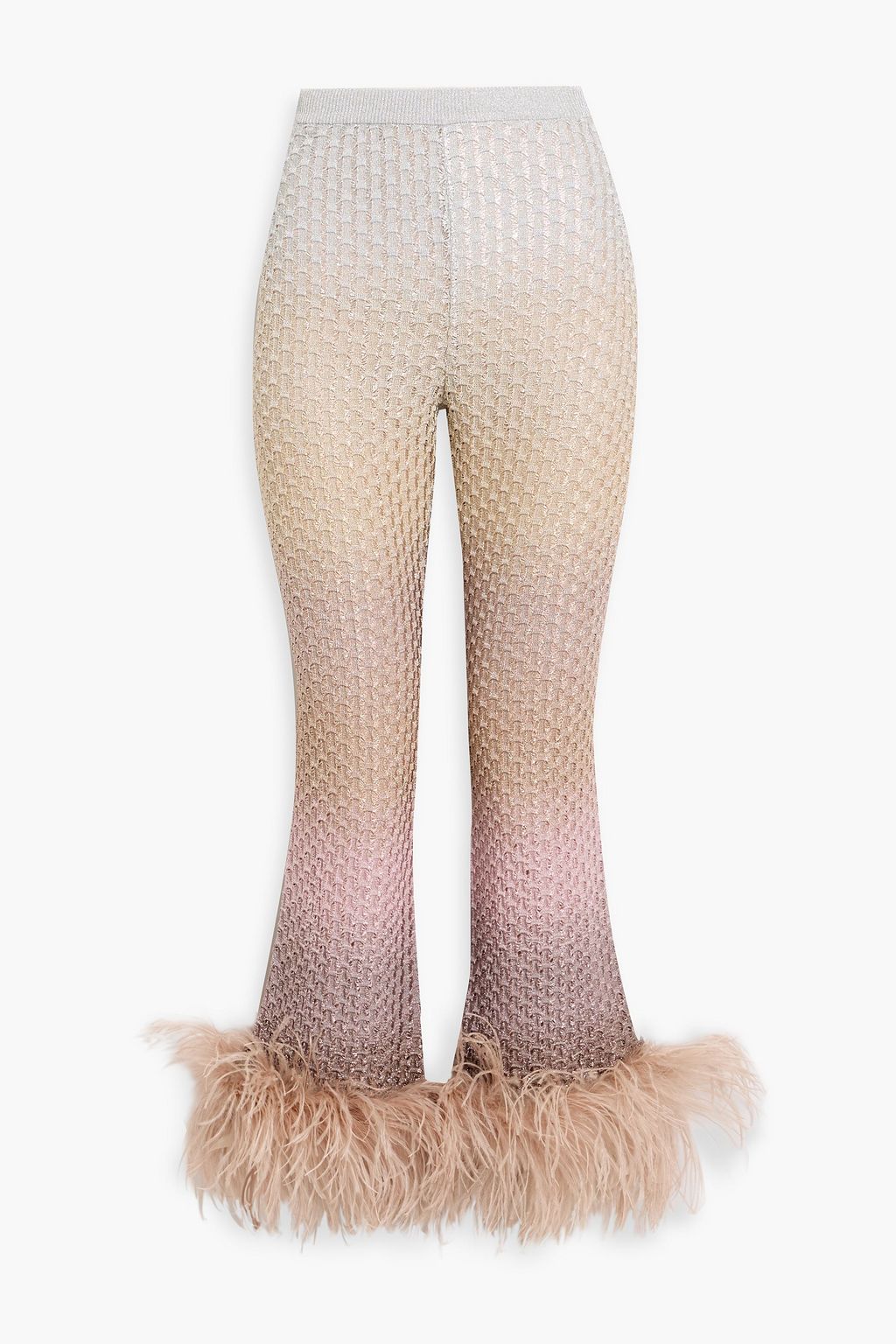 VALENTINO GARAVANI Feather-embellished metallic crochet-knit flared pants