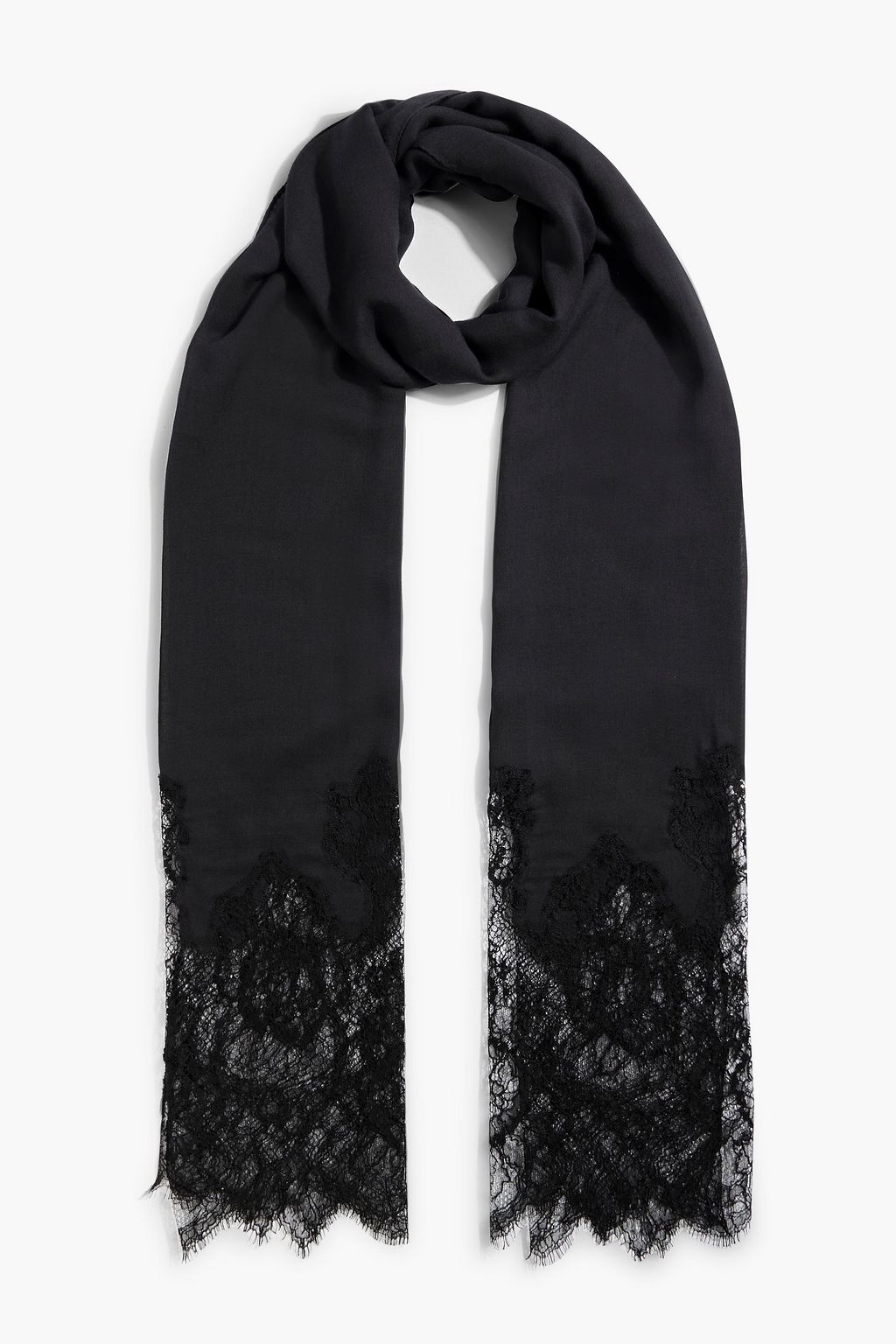 VALENTINO GARAVANI Lace-trimmed modal and cashmere-blend twill scarf