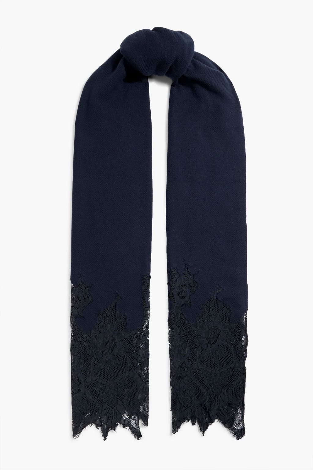 VALENTINO GARAVANI Lace-trimmed ribbed cashmere scarf