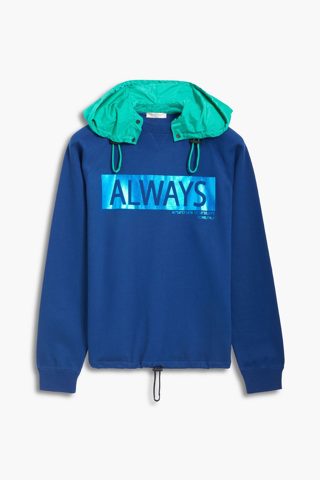 VALENTINO GARAVANI Metallic printed French cotton-blend terry hoodie