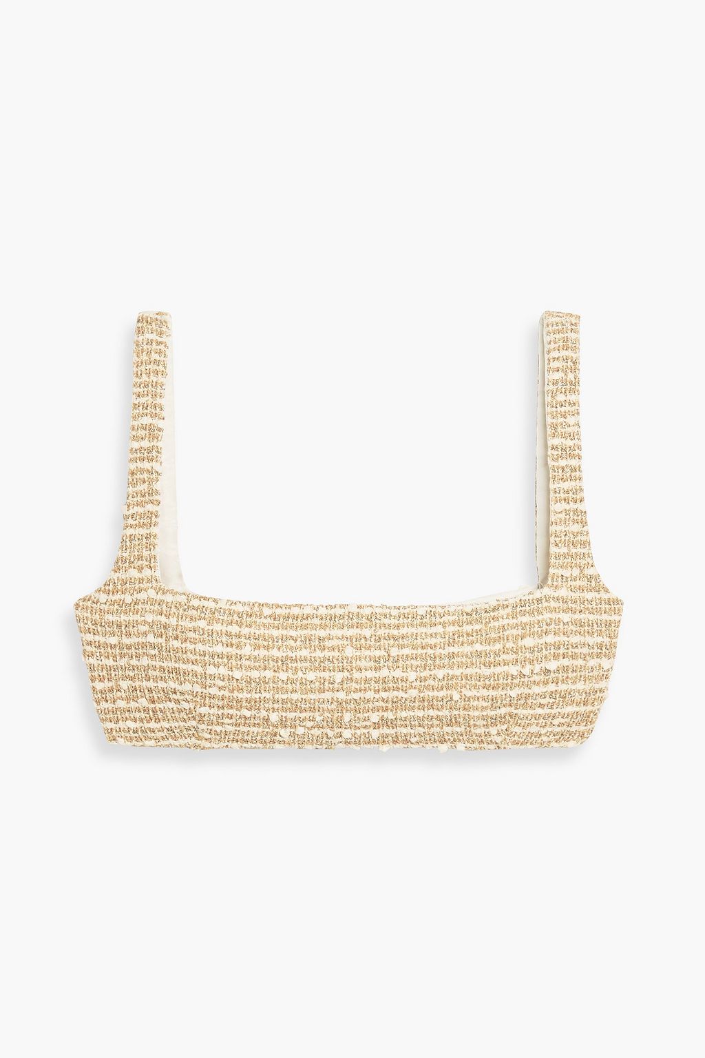 VALENTINO GARAVANI Metallic cotton-blend tweed bra top