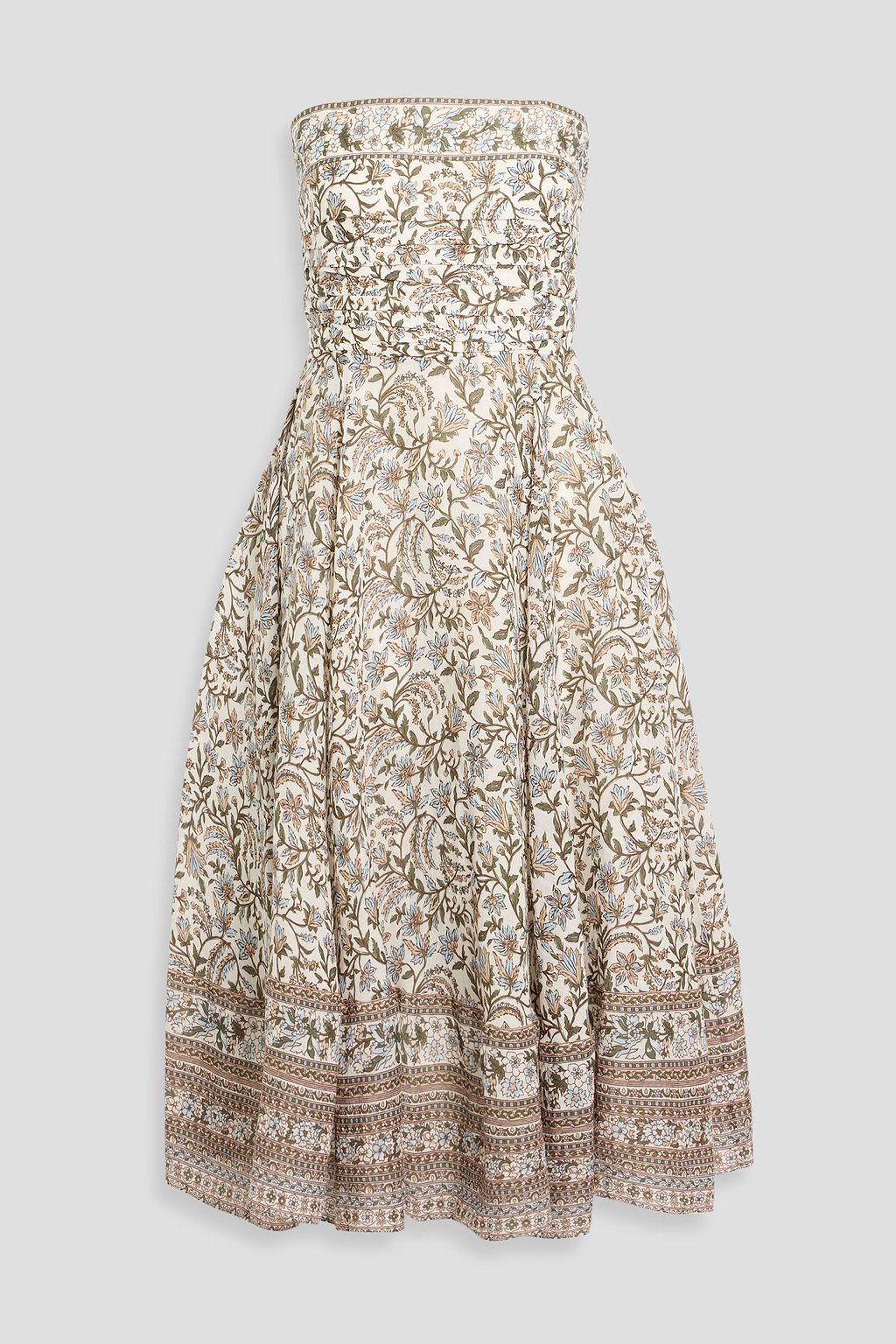 VERONICA BEARD Lana strapless floral-print ramie midi dress