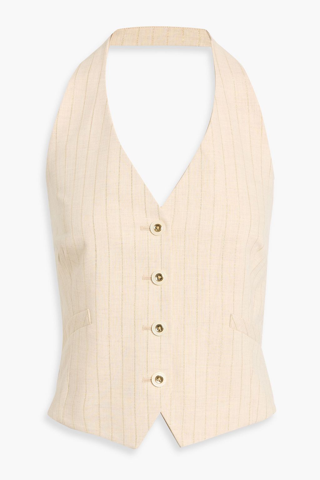 VERONICA BEARD Arabella metallic pinstriped cotton-blend halterneck vest