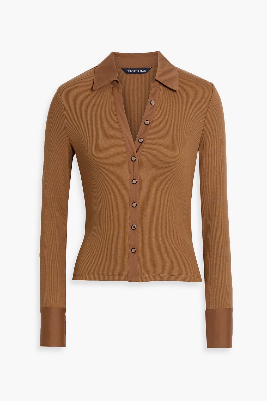 VERONICA BEARD Scottie poplin-trimmed ribbed Pima cotton-blend shirt