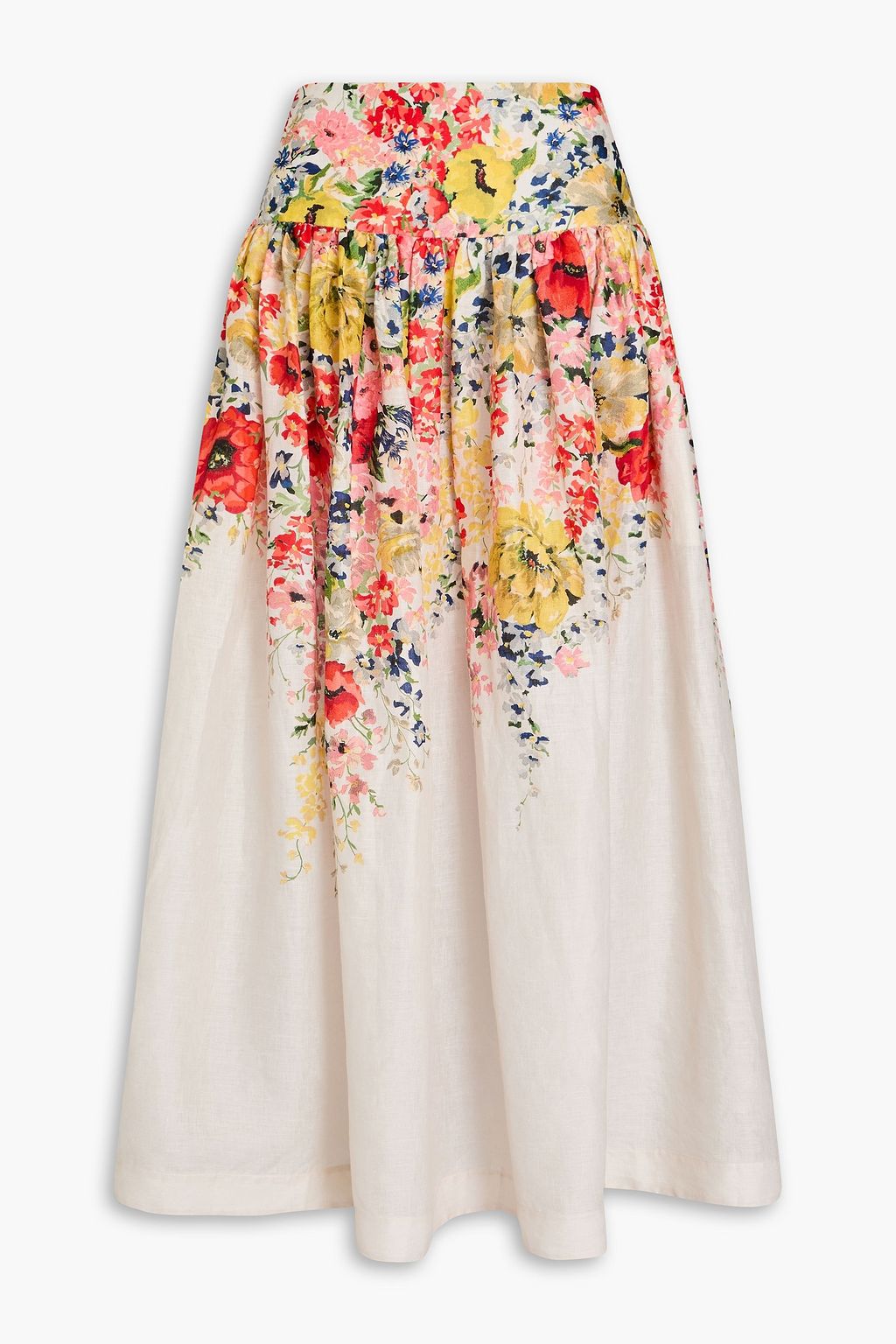 ZIMMERMANN Gathered floral-print linen maxi skirt