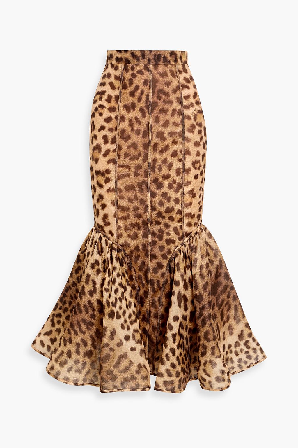 ZIMMERMANN Fluted leopard-print linen and silk-blend gauze midi skirt