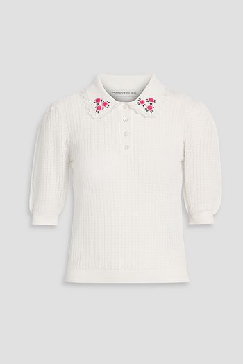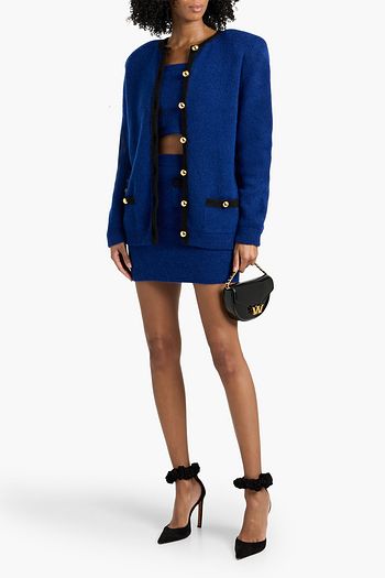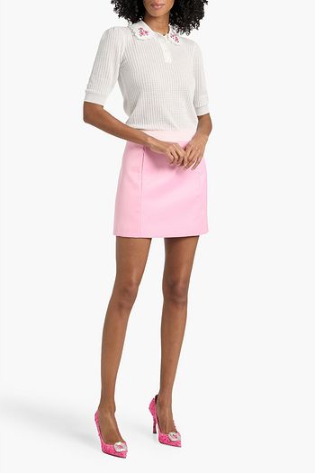 Cropped crystal-embellished pointelle-knit mohair-blend cardigan