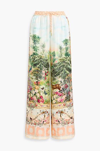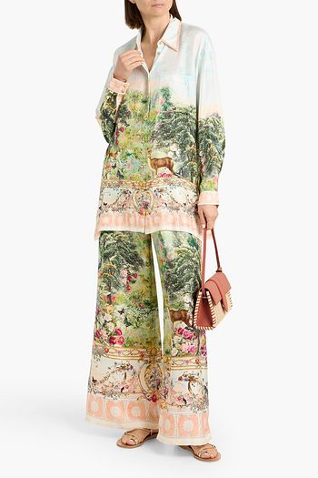 Embellished printed silk-satin top