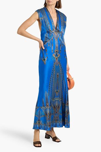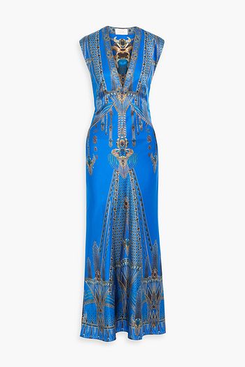 Crystal-embellished printed silk maxi dress