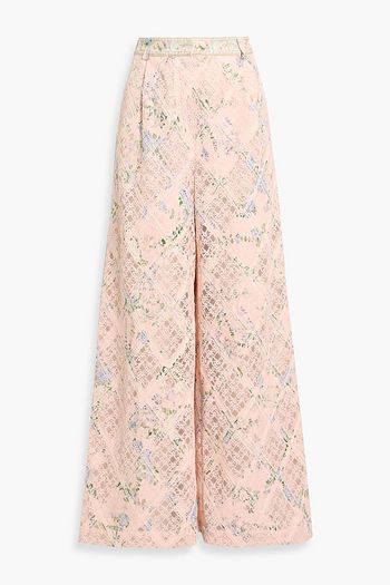 Broderie anglaise-trimmed floral-print cotton-poplin mini wrap dress