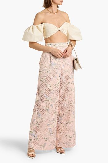 Floral-print broderie anglaise linen halterneck playsuit