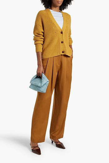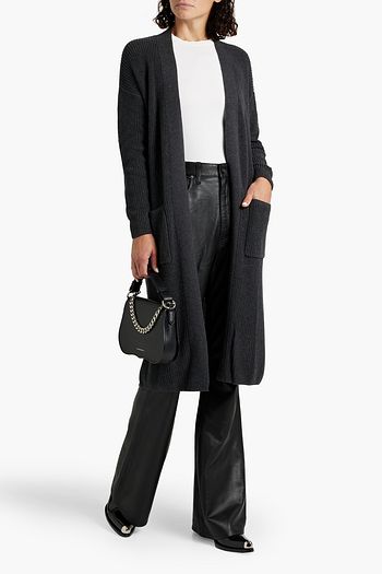 Gathered ribbed-knit cotton cardigan