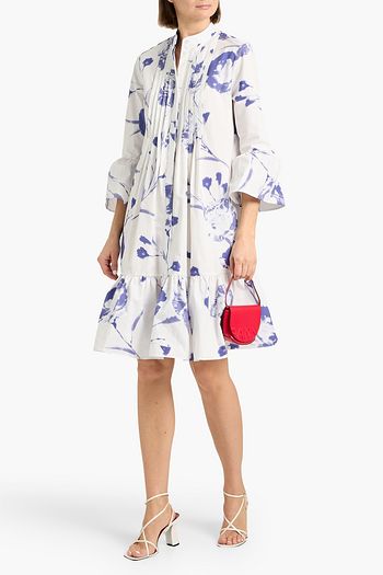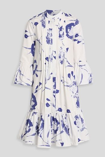 Pintucked floral-print cotton-poplin dress