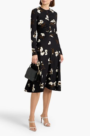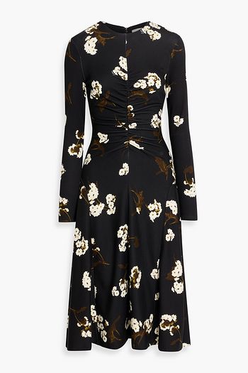 Ruched floral-print jersey midi dress