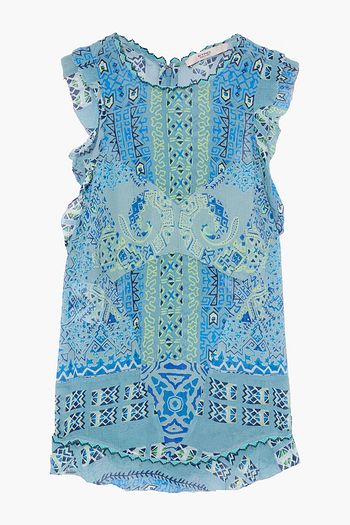 Embellished metallic fil coupé chiffon and printed silk-blend tank
