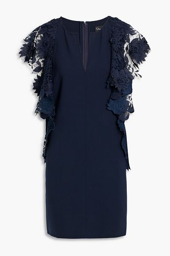 Off-the-shoulder floral-appliquéd crepe midi dress