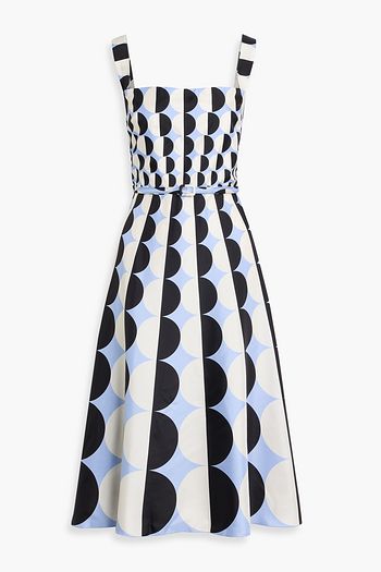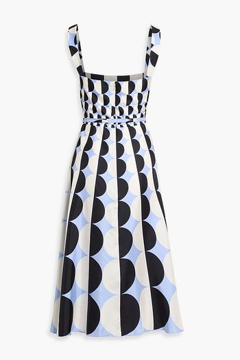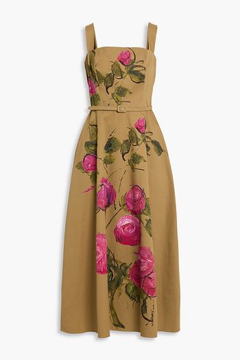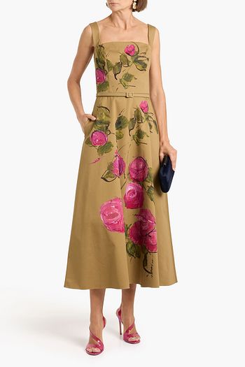 Draped floral-print cotton-blend poplin midi dress