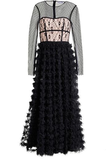 Ruffled point d'esprit and lace midi dress