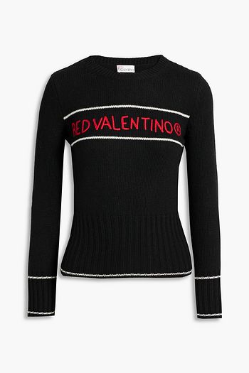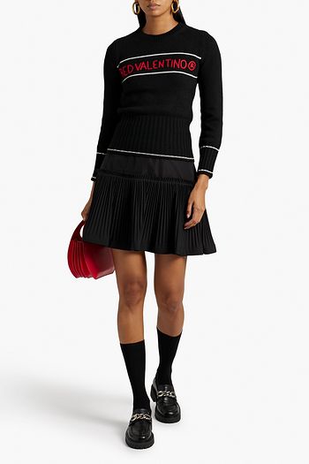 Point d'esprit-trimmed ruffled ribbed-knit sweater