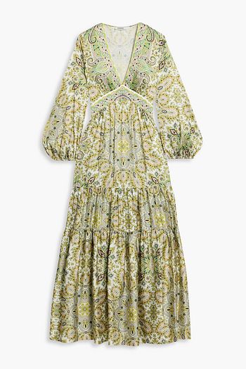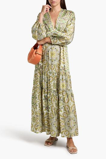 Tiered paisley-print satin-twill maxi dress