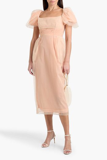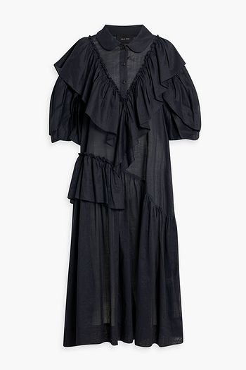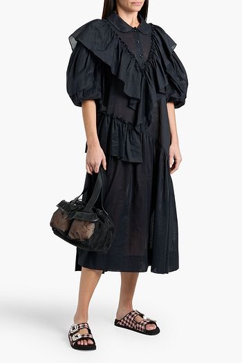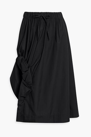 Buckle-detailed ruffled floral-print taffeta midi skirt