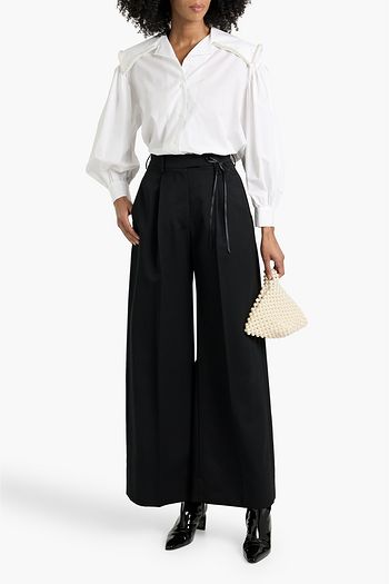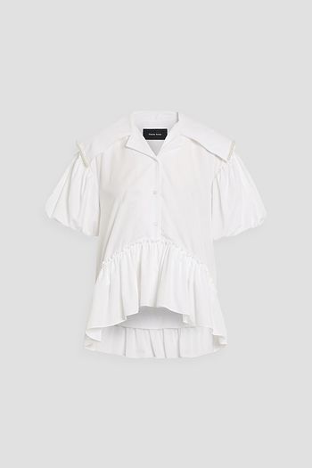 Buckle-detailed ruffled floral-print taffeta midi skirt