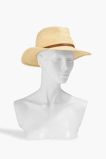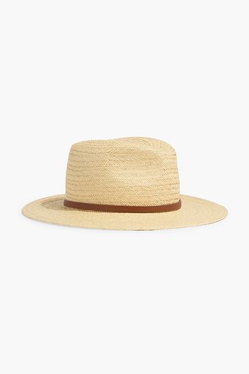 VLOGO leather-trimmed faux straw fedora