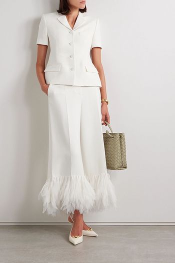 Feather-trimmed wool and cashmere-blend poncho