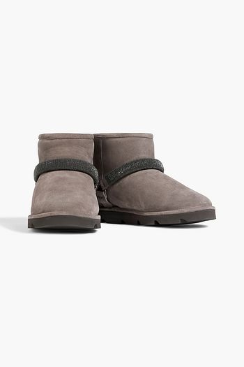 Bead-embellished shearling-lined suede ankle boots