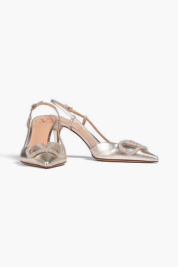 Crystal-embellished leather slingback sandals